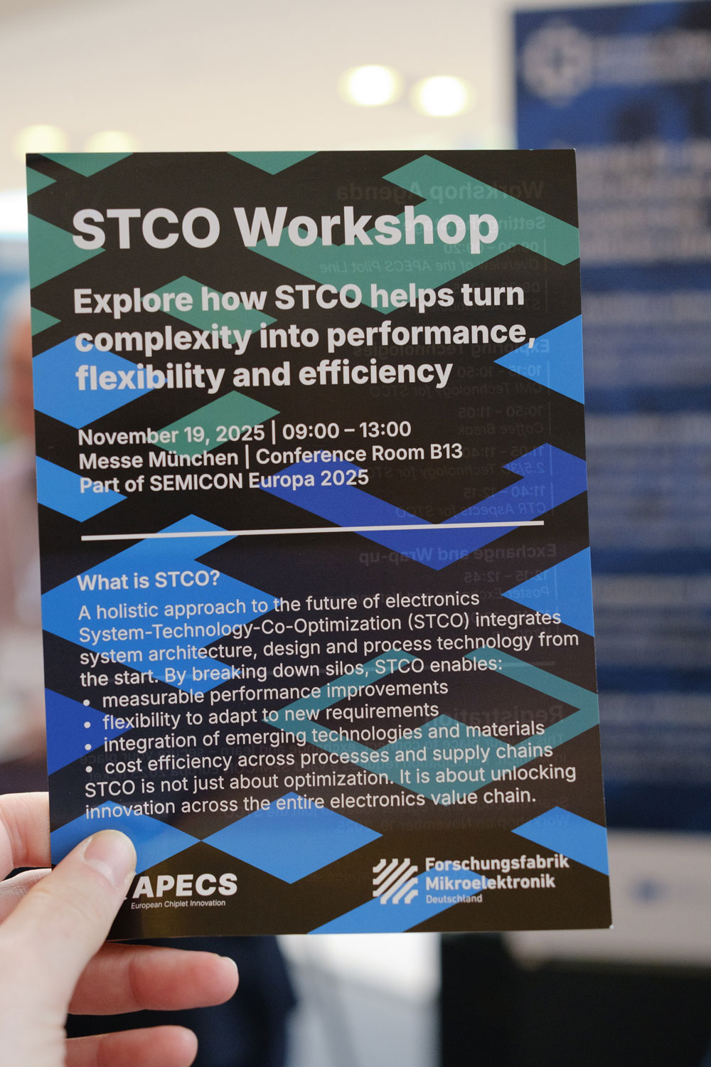One of the key highlights of the event program was the APECS workshop on System Technology Co-Optimization (STCO). In his opening remarks, Johannes Rittner, Project Lead Technology APECS at the FMD office, emphasized the essential role of STCO in coordinating system design, testing, reliability, and manufacturing. He was followed by Benjamin Prautsch from Fraunhofer IIS/EAS, who outlined how STCO accelerates the development of heterogeneous prototypes while ensuring that performance, cost, and scalability targets are met. The workshop also featured discussions on important technological enablers, including chiplet technologies and 2.5D/3D integration.